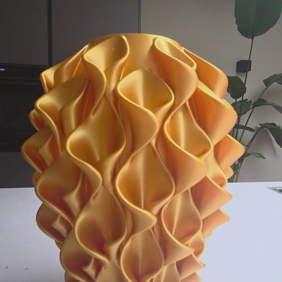 Breng kleur en originaliteit in huis met deze 3D-geprinte oranje vaas. Het speelse patroon en de subtiele kleurovergangen maken dit stuk een echte eyecatcher in ieder interieur.